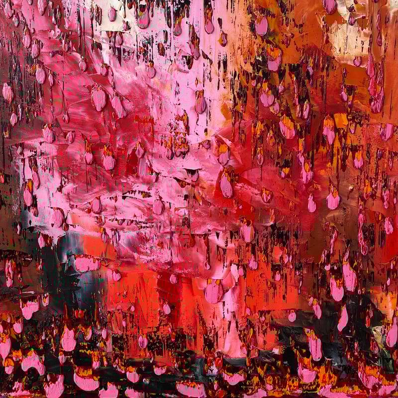 Layers and layers of oil paint have been applied to the canvas, the result of feeling rather than thinking, with colours colliding and occurring in an uncontrolled manner. The painting achieving a sense of depth, with fantastic detail hidden and exposed to varying degrees.