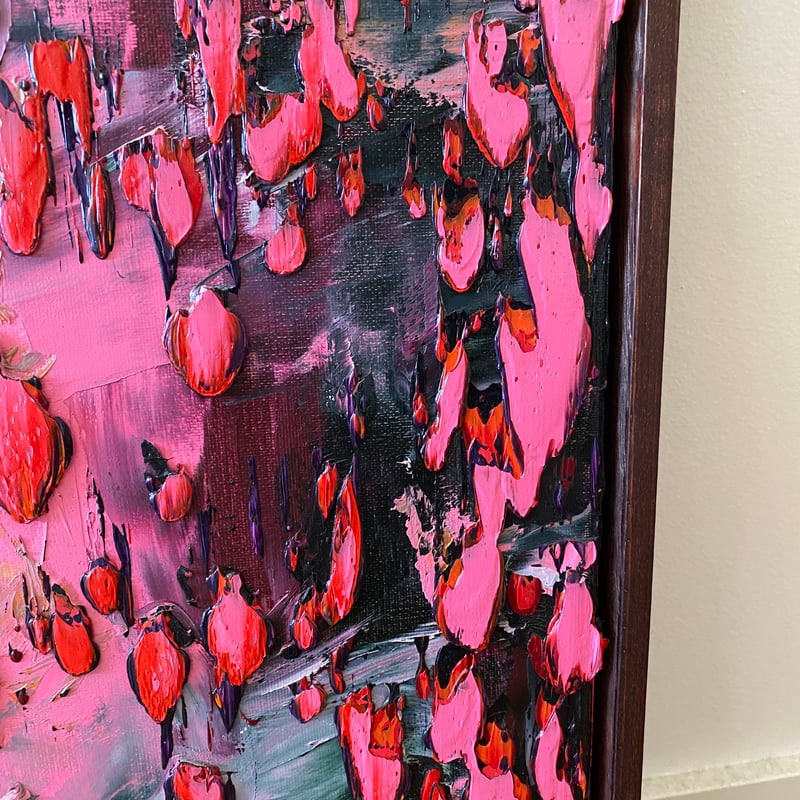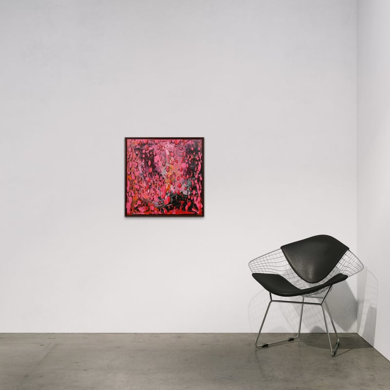 Layers and layers of oil paint have been applied to the canvas, the result of feeling rather than thinking, with colours colliding and occurring in an uncontrolled manner. The painting achieving a sense of depth, with fantastic detail hidden and exposed to varying degrees- ‘a joy to own and live with’.